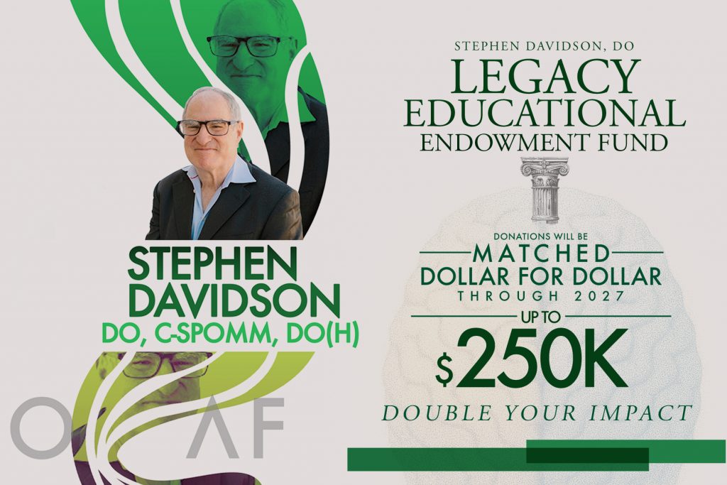 Through the Stephen Davidson, DO Legacy Educational Endowment Fund, our donors will be matched dollar-for-dollar.